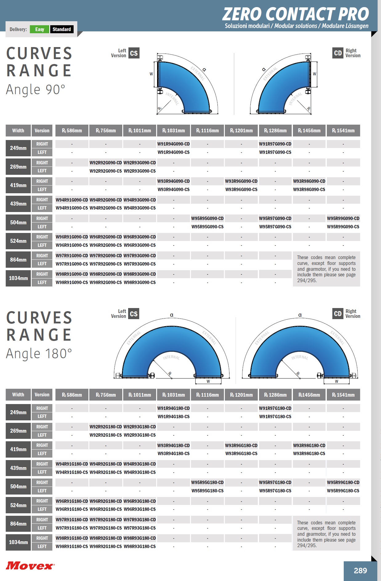 Внутренний радиус: 586мм ÷ 1541мм