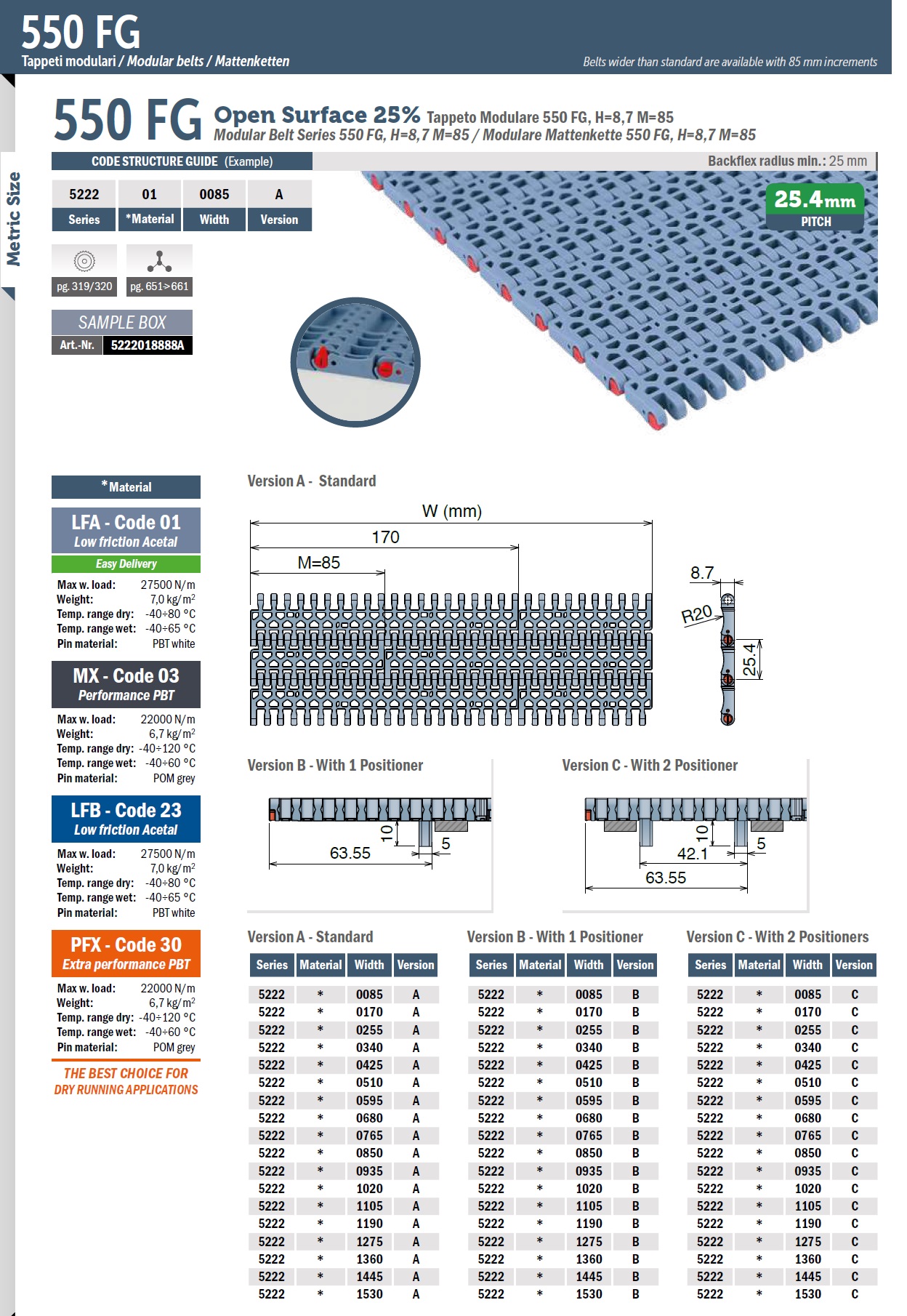 Модульная лента Movex 550 FG, H=8,7 M=85