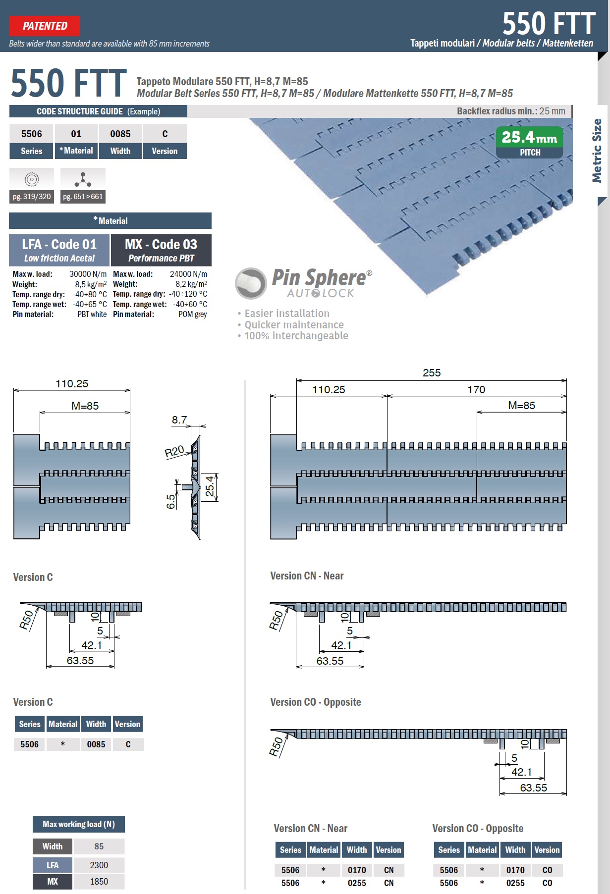 Модульная лента Movex 550 FTT, H=8,7 M=85