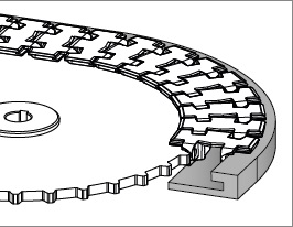 Совместима со звездочками и колесами 1701-1706-765 NO GAP, поворотными дисками. Магнитными угловыми направляющими 1701TAB-1706 TAB и прямыми.