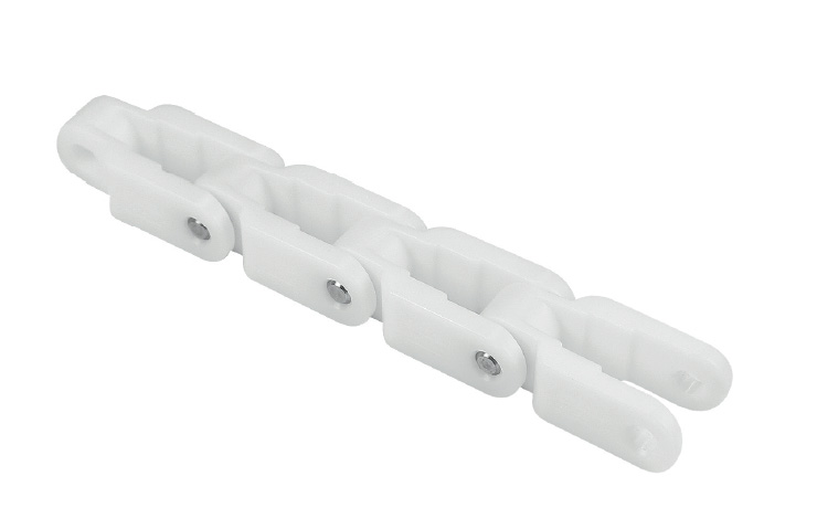 Конвейерная цепь имеет высокие пылеотталкивающие свойства. Подходит для применения в конвейерах на пищевом и фармацевтическом производстве. Также применяется для транспортировки стеклянных и металлических изделий.