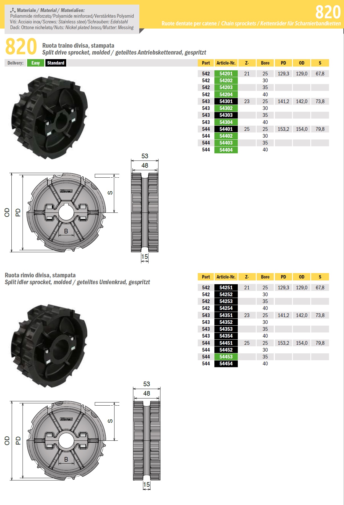 Звездочка конвейерная приводная 820 серии изготавливается из высококачественной армированной пластмассы. Применяются для конвейеров с пластинчатыми цепями. Подходят для прямоходных пластиковых лент 820, 820V.