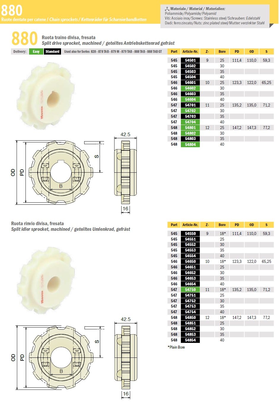 Звездочка конвейерная приводная 880 серии изготавливается из высококачественной армированной пластмассы. Применяются для конвейеров с пластинчатыми цепями. Подходят для применения с лентами и цепями 828-878TAB-879M-879TAB-888TAB-888TAB GT.